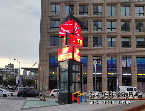 山東臨沂LED旋轉屏精神堡壘魔方柱